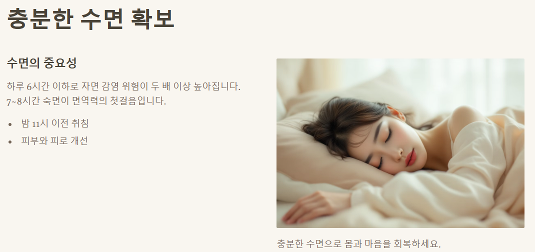 면역력의 첫걸음은 '잠'이에요. 😴
