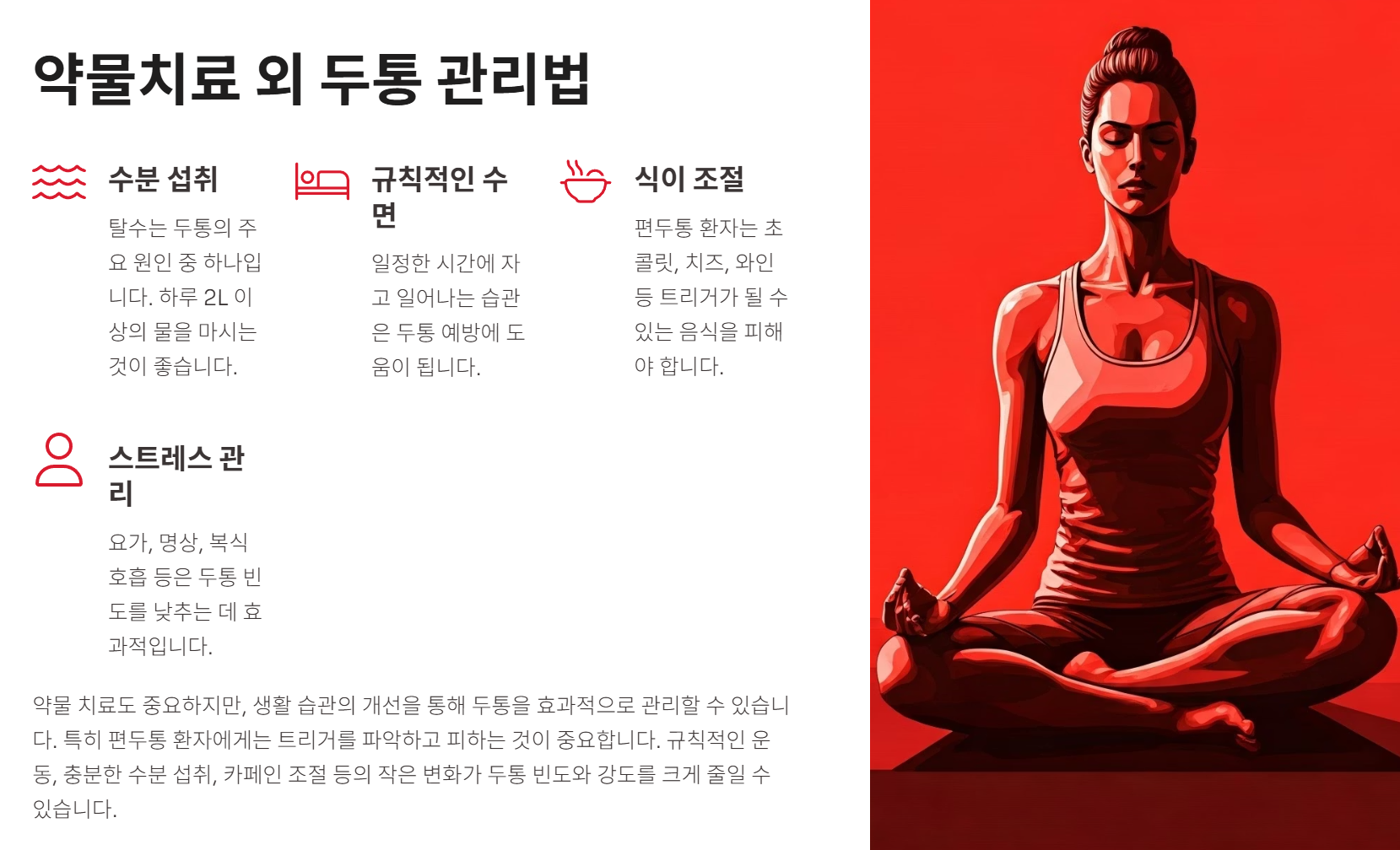 우리의 일상 속 작은 변화가 두통을 줄이는 큰 열쇠가 될 수 있어요! 🔑