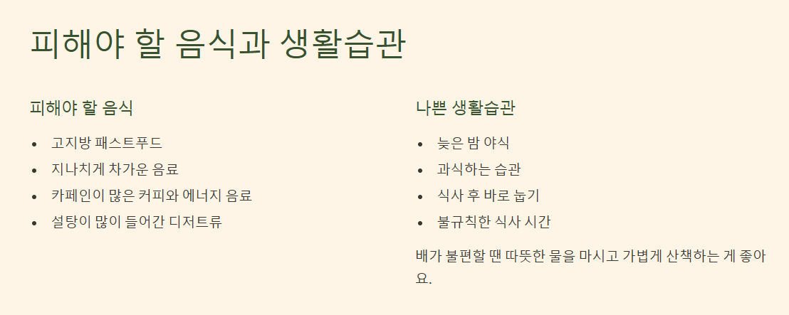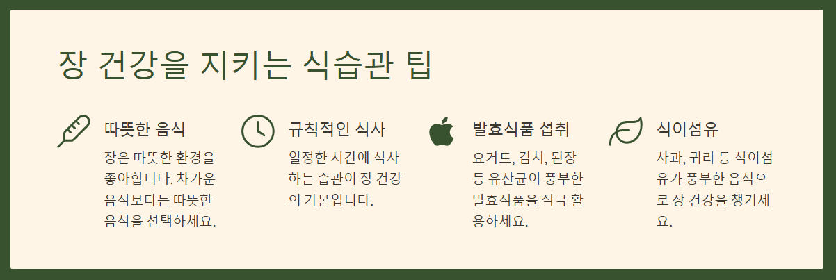 생활습관으로는 늦은 밤 야식, 과식, 식사 후 바로 눕기 등이 장 건강을 망치는 지름길이에요. 저는 매번 식사 후에 쇼파에 누워서 TV 보다가 다음날 복통으로 고생한 적이 많아요. 배가 불편할 땐 따뜻한 물을 마시고 가볍게 산책하는 게 훨씬 좋아요.