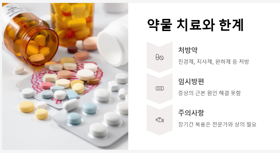병원에서는 보통 진경제, 지사제, 완하제 등을 처방해요. 하지만 이건 '임시방편'일 뿐, 증상의 근본 원인을 해결하진 못하더라고요. 예를 들어 저 같은 경우, 스트레스 상황에서 약을 먹어도 소용이 없었어요. 그래도 증상이 심할 땐 약이 큰 도움이 되니, 단기간 복용은 효과적일 수 있어요. 다만 장기간 복용은 반드시 전문가와 상의해야 해요.