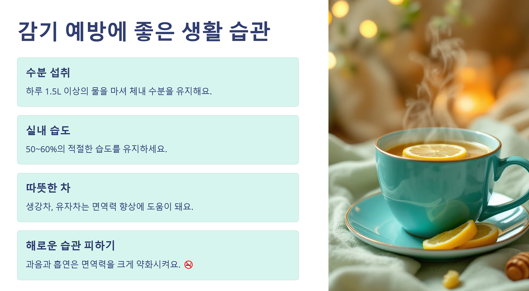 작은 습관 하나가 면역력을 높이고 감기를 예방하는 데 큰 도움이 돼요! 😊