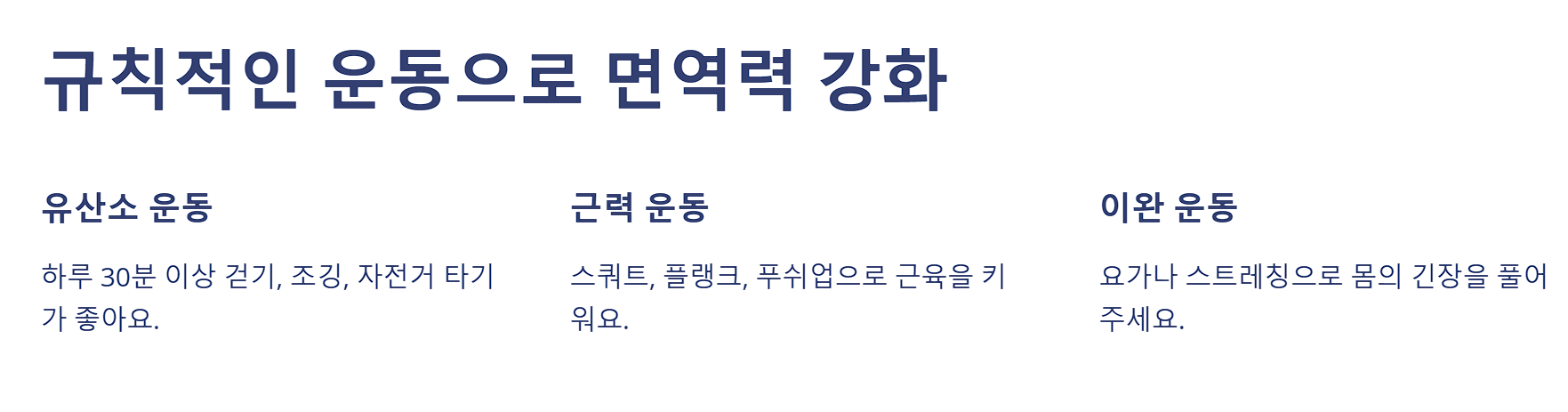 운동을 하면 혈액순환이 원활해지고 면역세포가 활성화되어 감염 위험이 줄어든답니다! 🏋️♀️