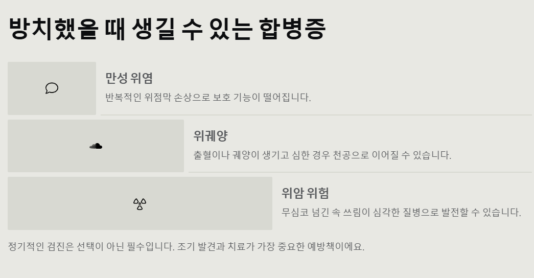 - 방치했을 때 생길 수 있는 합병증