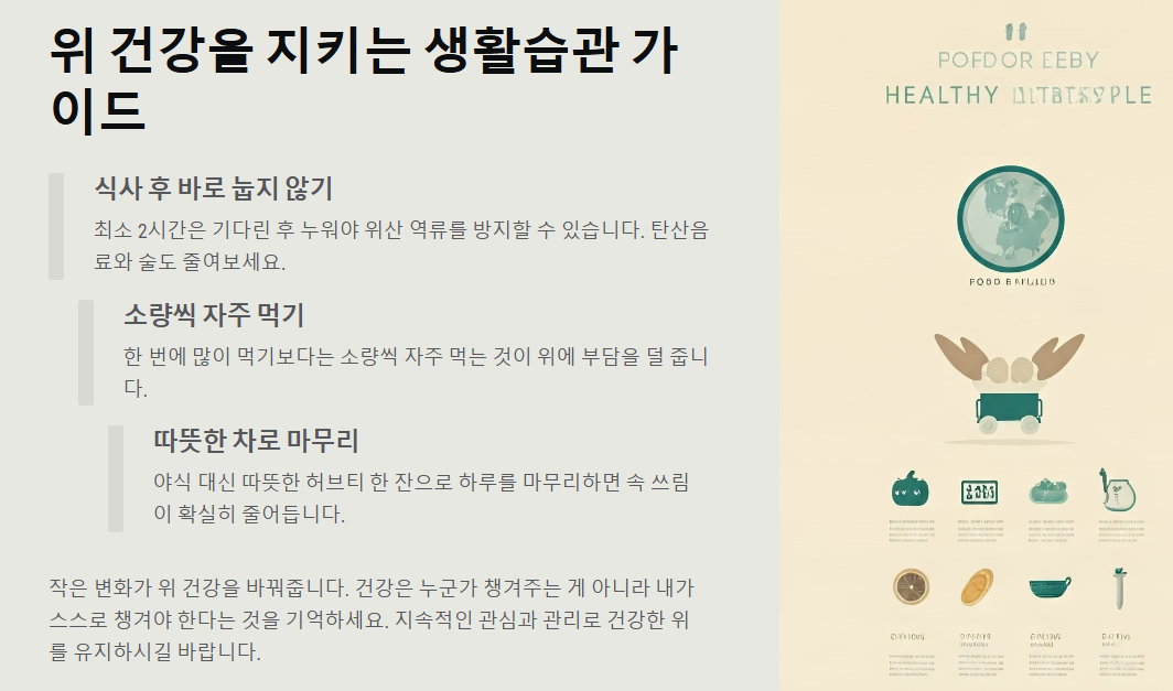 특히 위염 진단을 받았던 후, 저는 야식 대신 따뜻한 허브티 한 잔으로 마무리했더니 확실히 속 쓰림이 줄어들었어요. 작은 변화가 위 건강을 바꿔줍니다!