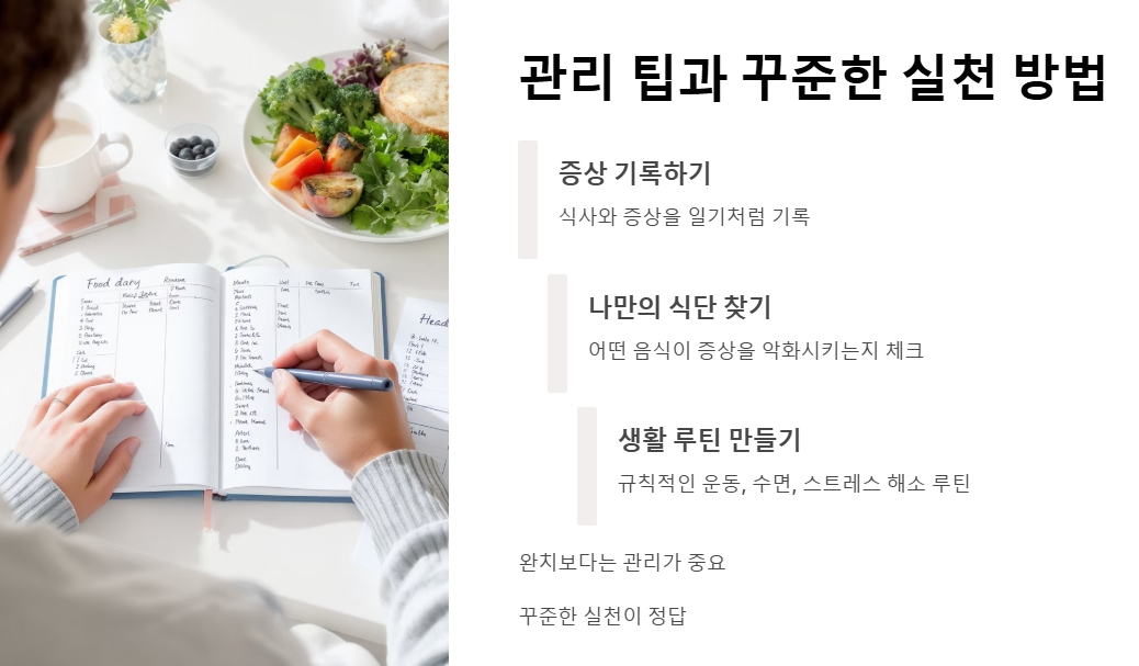 완치는 어렵지만, 충분히 증상을 완화하고 정상적인 생활이 가능해요. 생활습관과 식단 관리가 핵심입니다.
