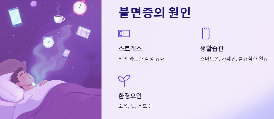 불면증은 단순히 ‘잠이 안 오는 날’로 끝나지 않아요. 저는 예전부터 잠드는 게 너무 힘들었는데, 그게 반복되다 보니 불안감까지 생기더라고요. 원인은 다양하지만, 대개 스트레스, 잘못된 생활습관, 또는 환경적인 요인이 복합적으로 작용하더라고요. 특히 현대인은 과도한 스마트폰 사용, 카페인 섭취, 과한 업무 스트레스로 인해 수면의 질이 크게 떨어집니다. 중요한 건, 이 모든 게 한두 번이 아니라 '습관'이 되었을 때 문제가 더 심각해진다는 점이에요.