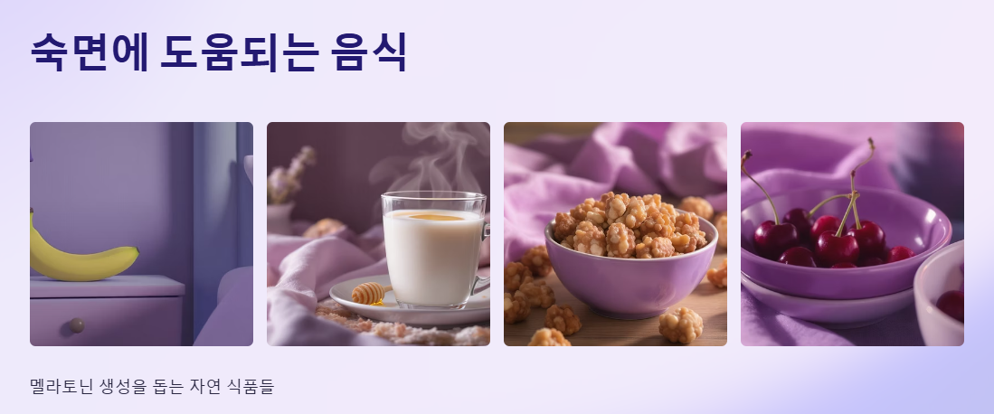 있습니다! 바나나, 체리, 따뜻한 우유, 호두 등이 멜라토닌 생성을 도와 숙면에 도움이 됩니다.