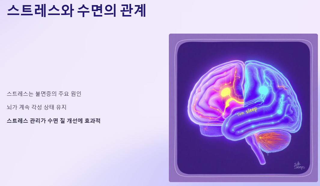 스트레스는 불면증의 가장 흔한 원인 중 하나입니다. 저 역시 중요한 프레젠테이션이 있던 전날엔 늘 잠을 설쳤어요. 뇌가 계속 각성 상태를 유지하려 하기 때문인데요, 이럴 땐 마음을 가라앉히는 루틴이 꼭 필요해요. 예를 들어 저녁 8시 이후에는 일 얘기를 멈추고, 간단한 스트레칭이나 명상으로 뇌를 ‘휴식 모드’로 전환해보세요. 실제로 연구에서도 스트레스 관리가 수면 질 개선에 매우 효과적이라는 결과가 많아요.