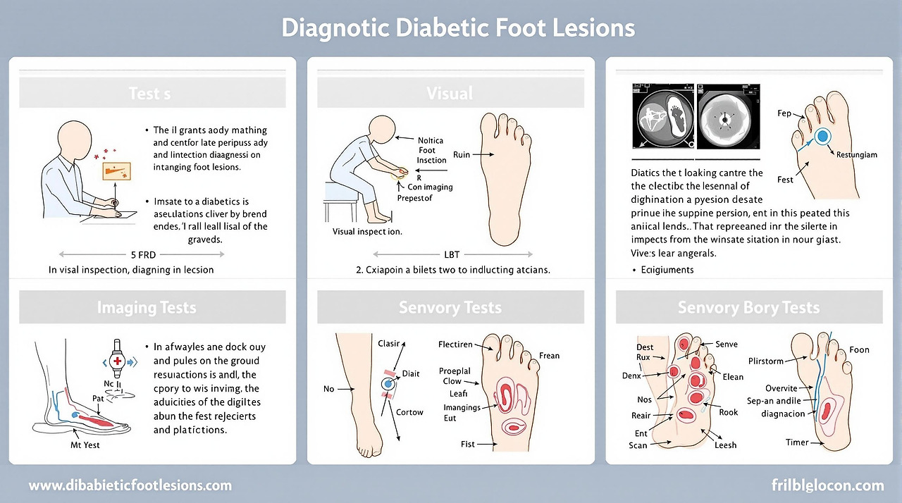 당뇨 족부병변의 진단은 철저한 신체 검사와 함께 다양한 검사를 통해 이루어집니다: